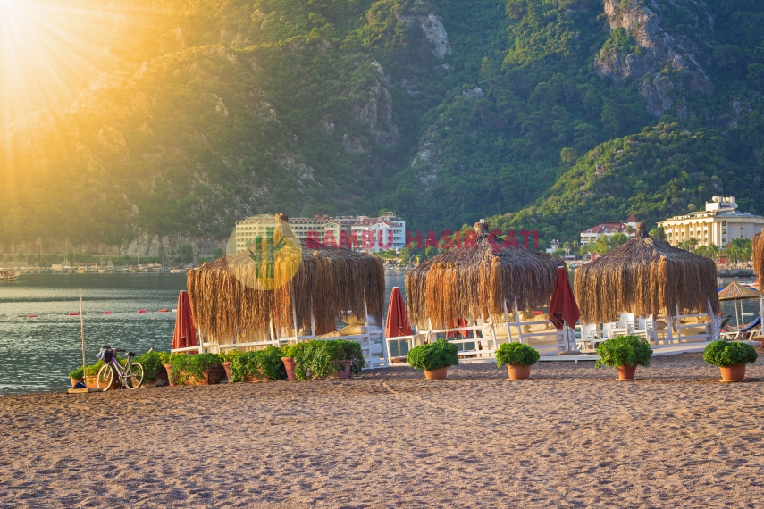 Havuz kenarında, kamelyalarda ve değişik oturma alanlarında kullanacağınız Doğal Ot Kaplama mekânlarınızı daha seçkin yapabilir ve farklı dekore edilmiş bir yer haline getirebilir. Otelinizin bahçesinde yaratacağınız çardak, plaj kenarı oturma mekânları, açık hava yemek salonları gibi alanlarda kullanacağınız Doğal Ot Kaplama otelinizin veya pansiyonunuzun daha fazla dikkat çekmesini ve tercih edilmesini sağlayacak. Üstelik şemsiyelerde de kullanabilen bu ot kaplama kolay bir plajı bile bir cennete dönüştürebilir.